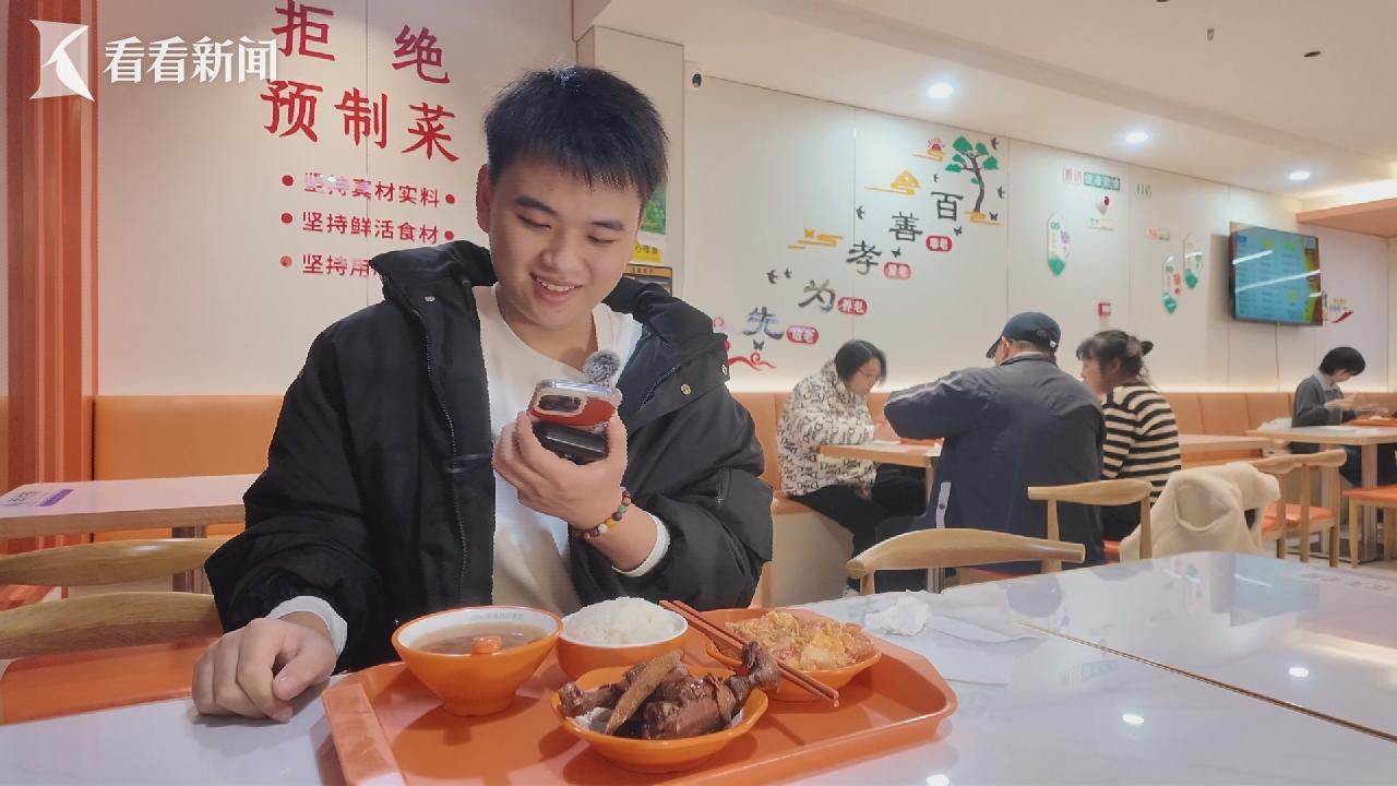 而另一頭,結束忙碌的沈壯奇舉著手機,把公寓食堂的晚餐拍給家里人看:兩菜一湯,熱氣騰騰,“香得很”。