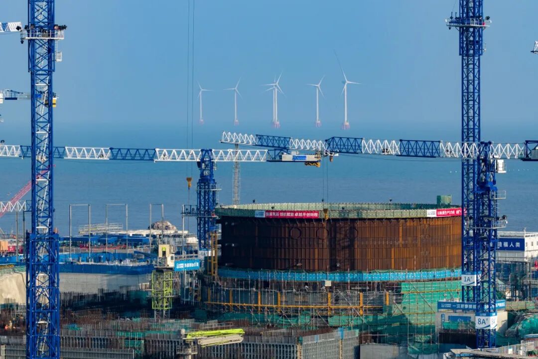12月15日,浙江寧波象山縣金七門核電項目建設現場,機械轟鳴,施工人員有序作業。章勇濤攝
