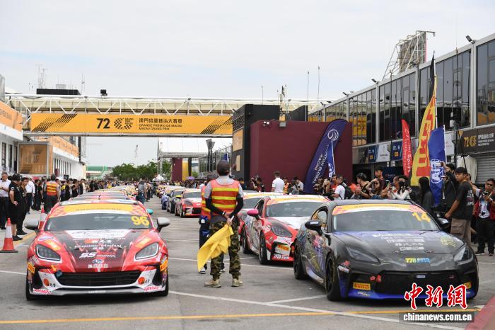 2025年11月13日,第72屆澳門格蘭披治大賽車開賽,澳門傳奇的“東望洋賽道”再度響起賽車引擎的轟鳴聲。圖為參加練習賽的賽車準備出發。中新社記者 鄭嘉偉 攝