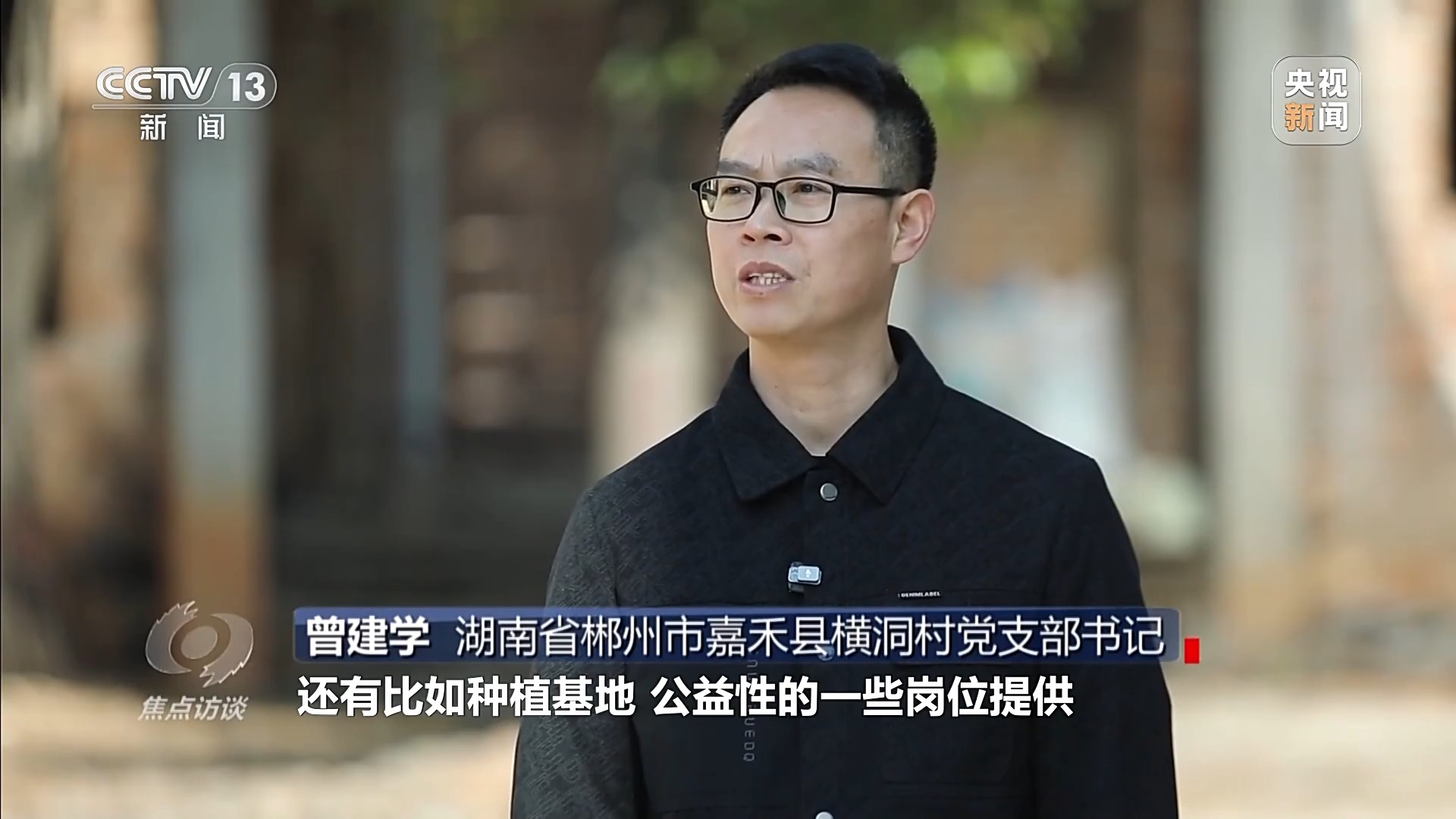 湖南省郴州市嘉禾縣橫洞村黨支部書記 曾建學:不只是車間做事,還有種植基地、公益性的一些崗位提供,因為提供就業崗位只是起點,他們能不能適應,從而來獲得穩定的收入,才是最終目的。