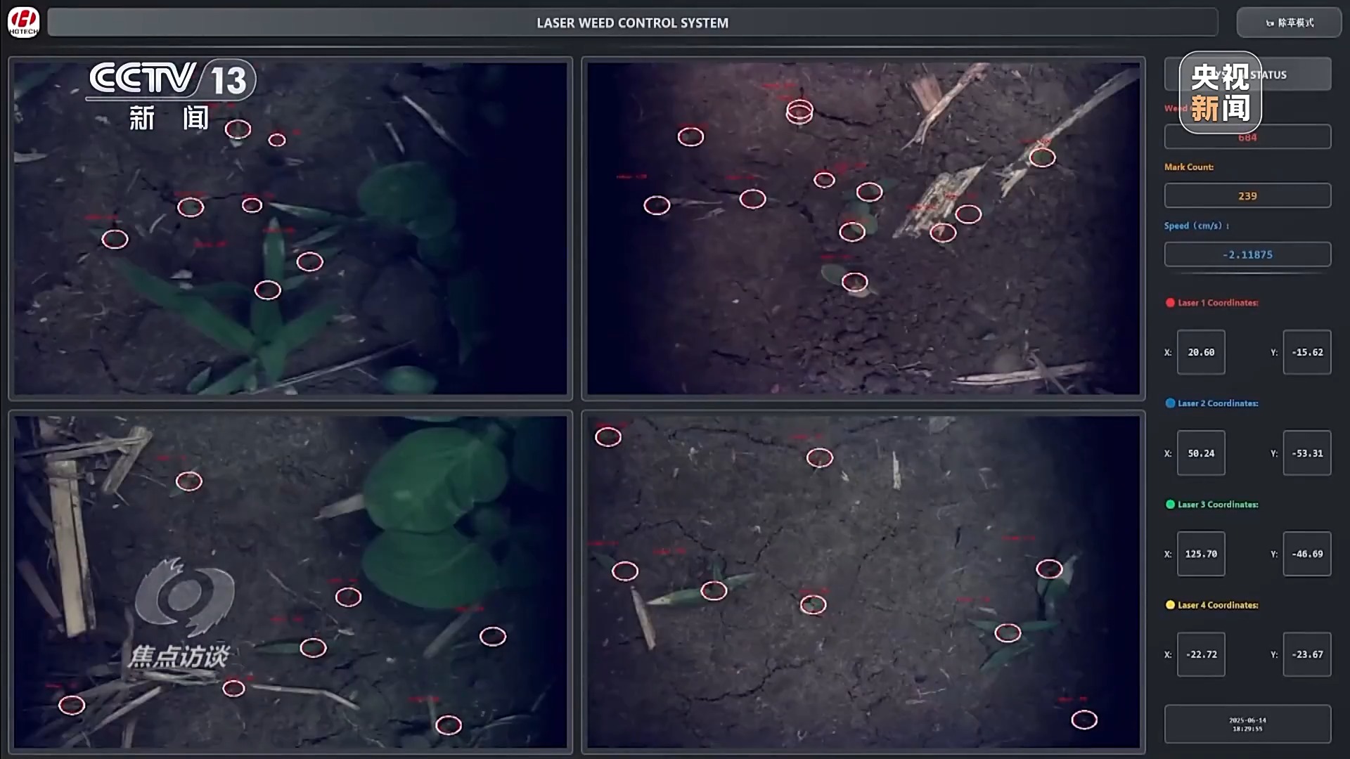 與噴灑除草劑、人工拔除等傳統除草方法相比,AI激光除草不損傷作物、不污染土壤、不耗費人力,能在不同天氣條件下持續穩定作業。