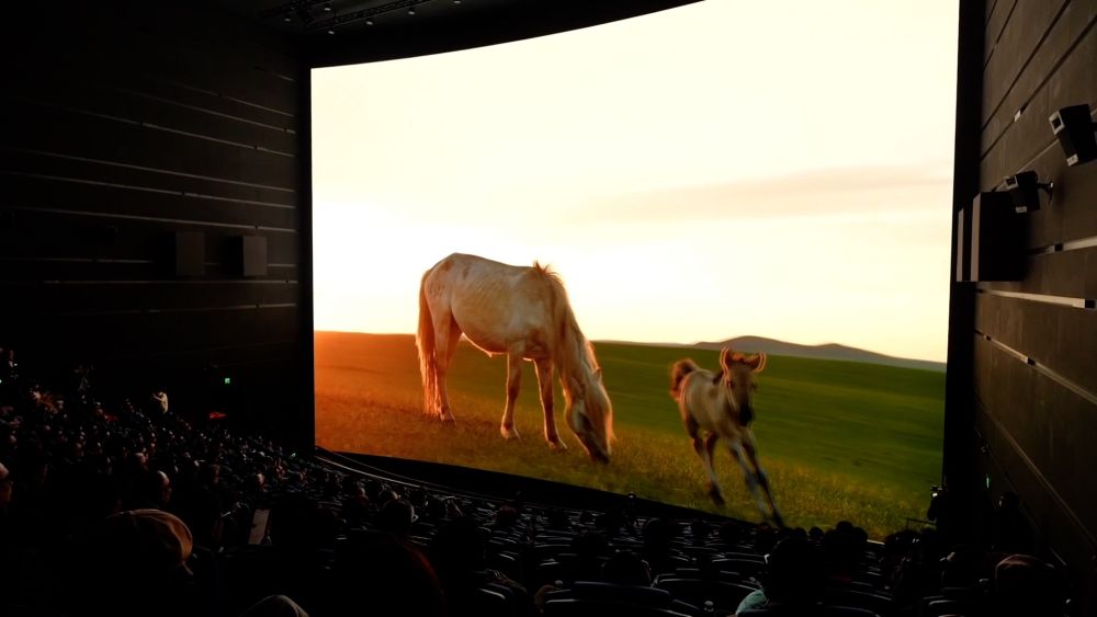 近日,全球首部生肖動物巨幕電影《馬到功成》在上海科技館內巨幕影院舉行首映。該屏幕融合4K、3D、高幀率等多項技術,同時也應用了中影集團新一代的CLED透聲屏方案。