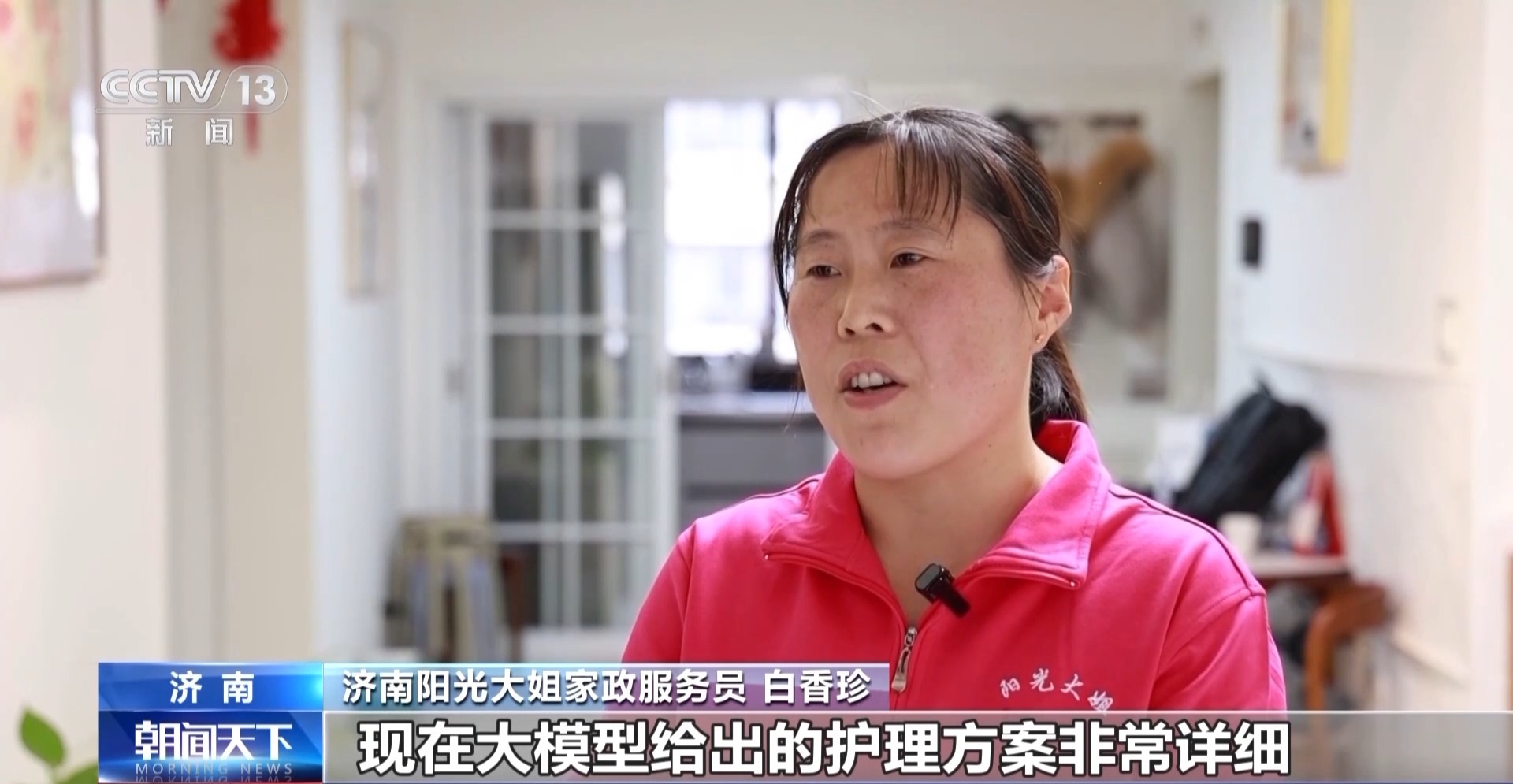 濟南陽光大姐家政服務員 白香珍:現在大模型給出的護理方案非常詳細,能夠具體到哪天、哪個時段、做多久的推拿拔罐等等,我相當于有了一個聰明的“助手”。