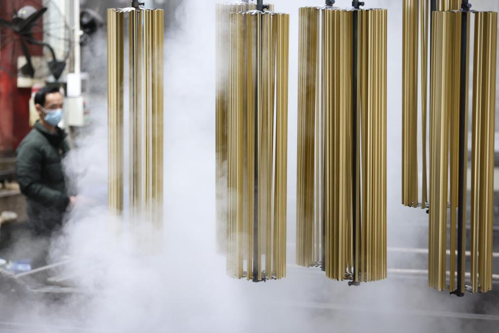 1月19日,工人在位于浙江省湖州市德清縣乾元鎮的浙江沃德新材料科技有限公司車間趕制鋁型材產品訂單。新華社發(倪立芳攝)