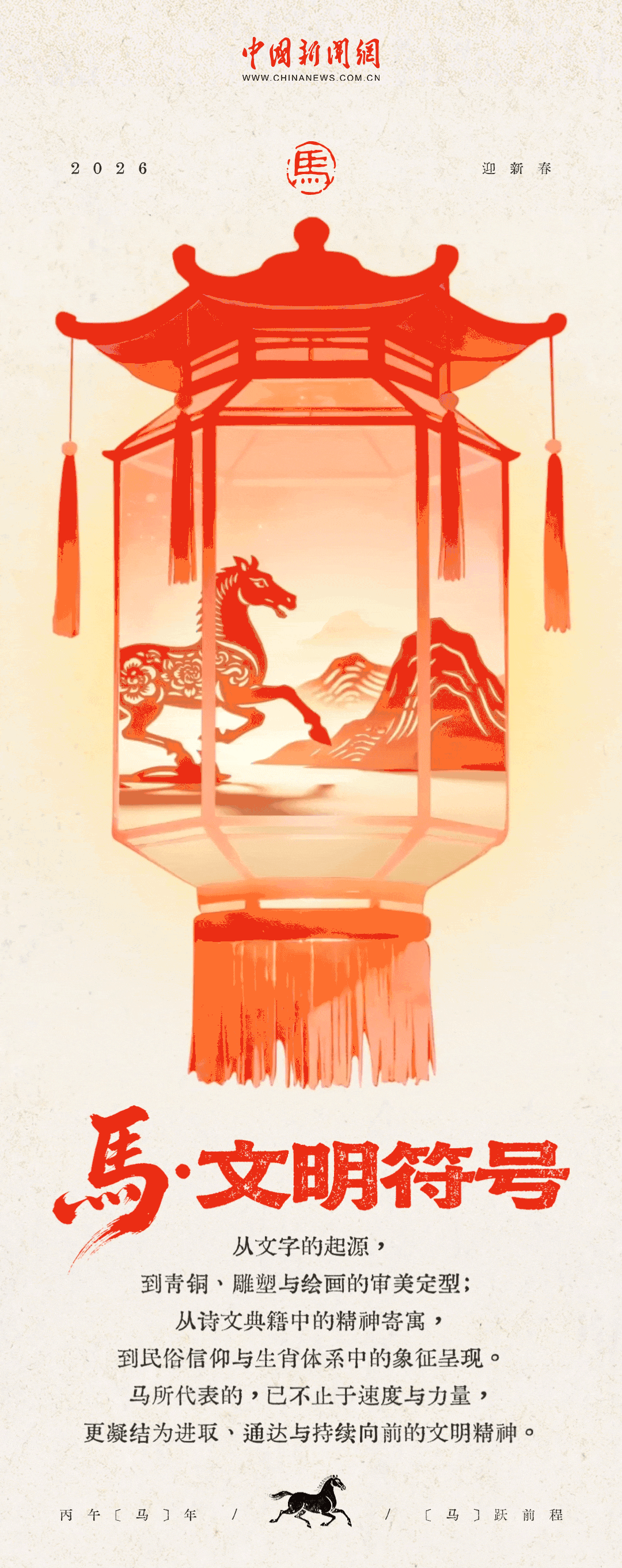 從甲骨上奔騰的形影,到詩詞中飛揚的蹄聲;從青銅器里凝固的千年神韻,到走馬燈上轉不盡的吉祥輪回,馬,始終陪伴在我們生活的煙火之中。眼看2026丙午馬年就要到啦,還記得小時候盯著走馬燈,看那紙馬一圈圈地跑,仿佛能帶走舊歲,轉來新春嗎?這回,讓我們一起循著那盞燈里的光影、書頁間的墨香、老話中的寓意,重新感受那份屬于馬的昂揚、踏實與祥瑞。