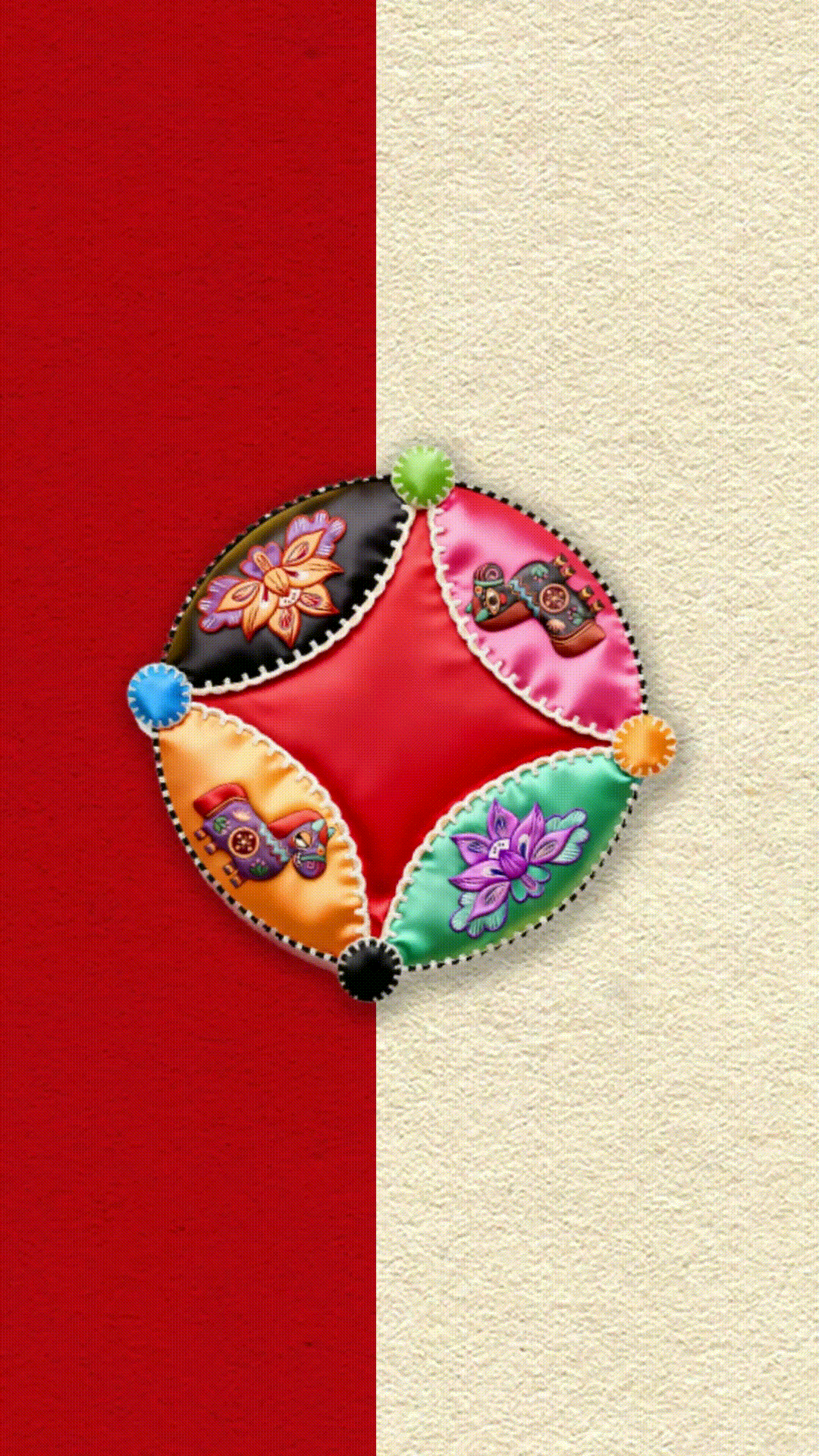 吉祥的紋樣在繡布上生動浮現