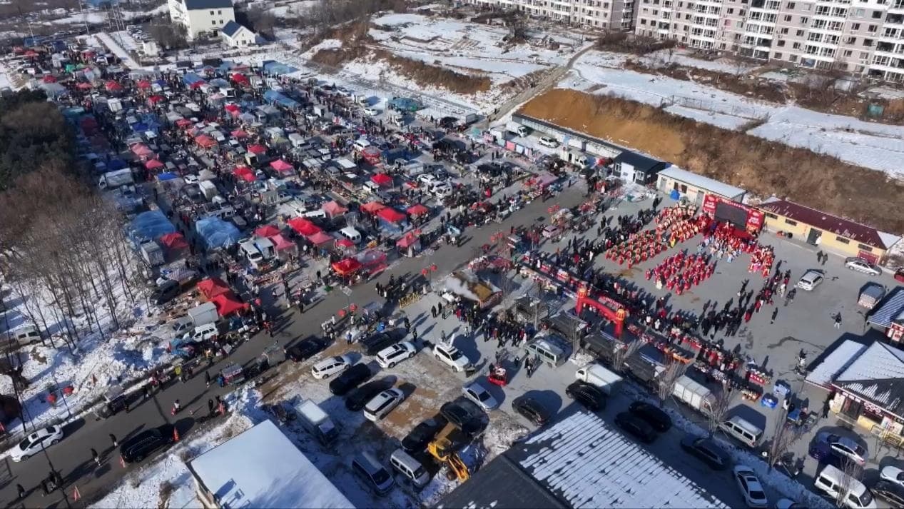 坐落于遼寧省沈陽市渾南區的上水泉生態大集,每周三、周六開集。這幾天,來這里趕集的人明顯多了起來。東北人喜歡的凍梨、凍柿子、粘豆包,這里任挑任選;團圓餐桌上的烤豬蹄、溜達雞、香煎鲅魚,這里給您一站備齊;炒榛子、大饅頭、蒸包子,那也必須都是冒著熱氣,剛剛出鍋。煙火旺,鍋氣香,年味十足的大集上,一片喜慶紅火。