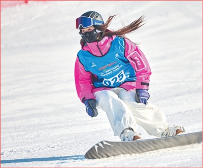 參賽者在湖北宜昌市興山縣昭君國際滑雪場進行滑雪比賽。