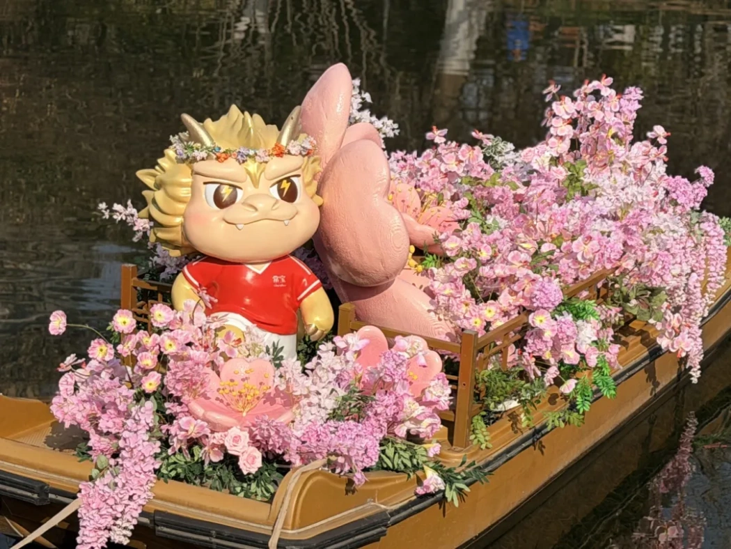 在江南水鄉,早春的序曲總是由梅花奏響。江蘇常州便是這抹春色里最具代表性的剪影。龍城正月,古運河畔紅燈籠高掛,紅梅公園內,唐代紅梅閣翹角飛檐,閣前紅梅燦若云霞,恰如趙翼詩中所繪的盛景。這里的賞梅,早已不是單純的游園,而是一場雅俗共賞的年俗盛會。文旅IP“常寶"穿梭送福,打卡點紅燈籠高懸,大年初一的市集上,手作、梅花好物琳瑯滿目,糖畫、梅花酥香氣四溢,文筆塔的花瀑氛圍拉滿,市民在梅香與煙火氣中收獲新春幸福。
