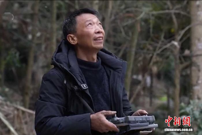 四川北川縣小園村村民楊修林正在飛無(wú)人機(jī)。 受訪者供圖