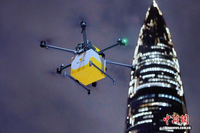 無(wú)人機(jī)在夜間送貨。 受訪者供圖