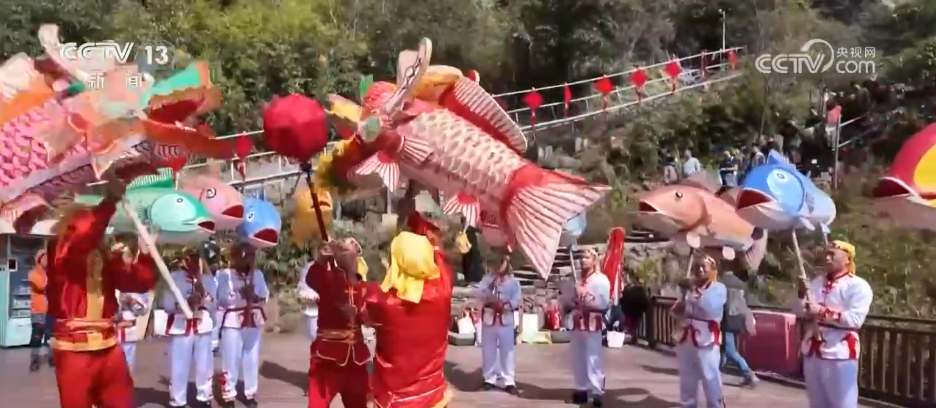 記者身后的九鯉湖景區,湖光山色、層巒疊翠,展現出南方山岳特有的靈秀。景區里最熱門的打卡點之一,叫做“一線天”。這里最窄處不到30厘米,一次只能容一人貼壁通過,游客需要側身慢慢穿行,在狹窄石縫間體驗攀登的樂趣。記者身旁正在巡游的就是當地的非遺——店下魚燈。大家看,一盞盞彩繪魚燈隨著隊伍前進上下擺動,像魚兒在水里游,特別靈動。在過去,漁民會用魚燈祈愿出海平安、豐衣足食。過年的時候看魚燈,也寓意“年年有余、風調雨順”。