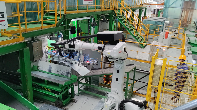 在本鋼板材冷軋總廠三冷工序,智能設備正將一塊鋼板放到樣板臺(央廣網(wǎng)發(fā) 本鋼集團供圖)