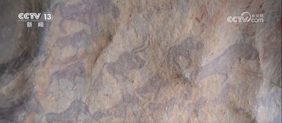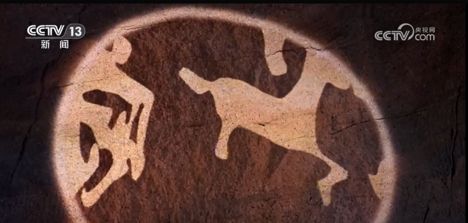 腳踏雪板,手持雪杖,在冰天雪地中馳騁。這不僅是今天滑雪場上的熱鬧場景,更早在萬年前就被鐫刻在中國新疆阿勒泰的敦德布拉克巖畫之中,成為先民留給世界的冰雪記憶。國家文物局磚石質文物保護基地副主任劉成介紹,那么小一個洞里面,2.6米長、1.7米高,繪畫技術非常高。這畫面上面是人在走,下面是動物在奔跑。10個人背著小包袱,身子向前傾,腳底下踩的是一個很短的雪橇,支桿,通過左手的力量和右腳的滑行,基本上可以判斷在(距今)11000年到9000年之間。