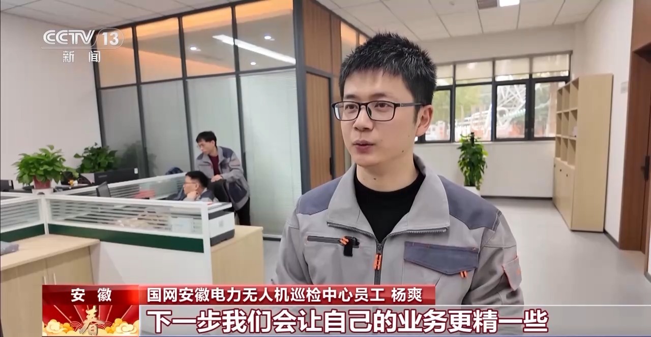 國網安徽電力無人機巡檢中心員工 楊爽:下一步我們會讓自己的業務更精一些。技術發展這么快,我們得跟緊時代的步伐。