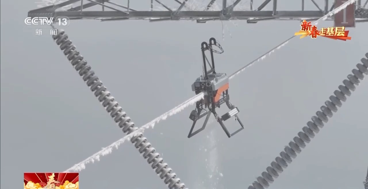 不斷旋轉的履帶,是它的雙腳。它一邊快速向前,一邊擠壓導線上的覆冰。1分鐘左右,20多米長的導線,覆冰全部被清理干凈。