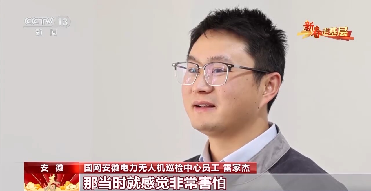 國網安徽電力無人機巡檢中心員工 雷家杰:第一次飛,就把無人機搞壞了。一架好幾萬,頂我一年的工資,當時就感覺非常害怕。現場不敢飛了,一看飛機離塔那么近,我手抖,后來腿都抖。