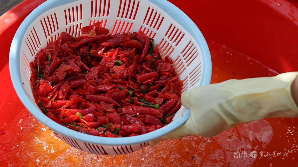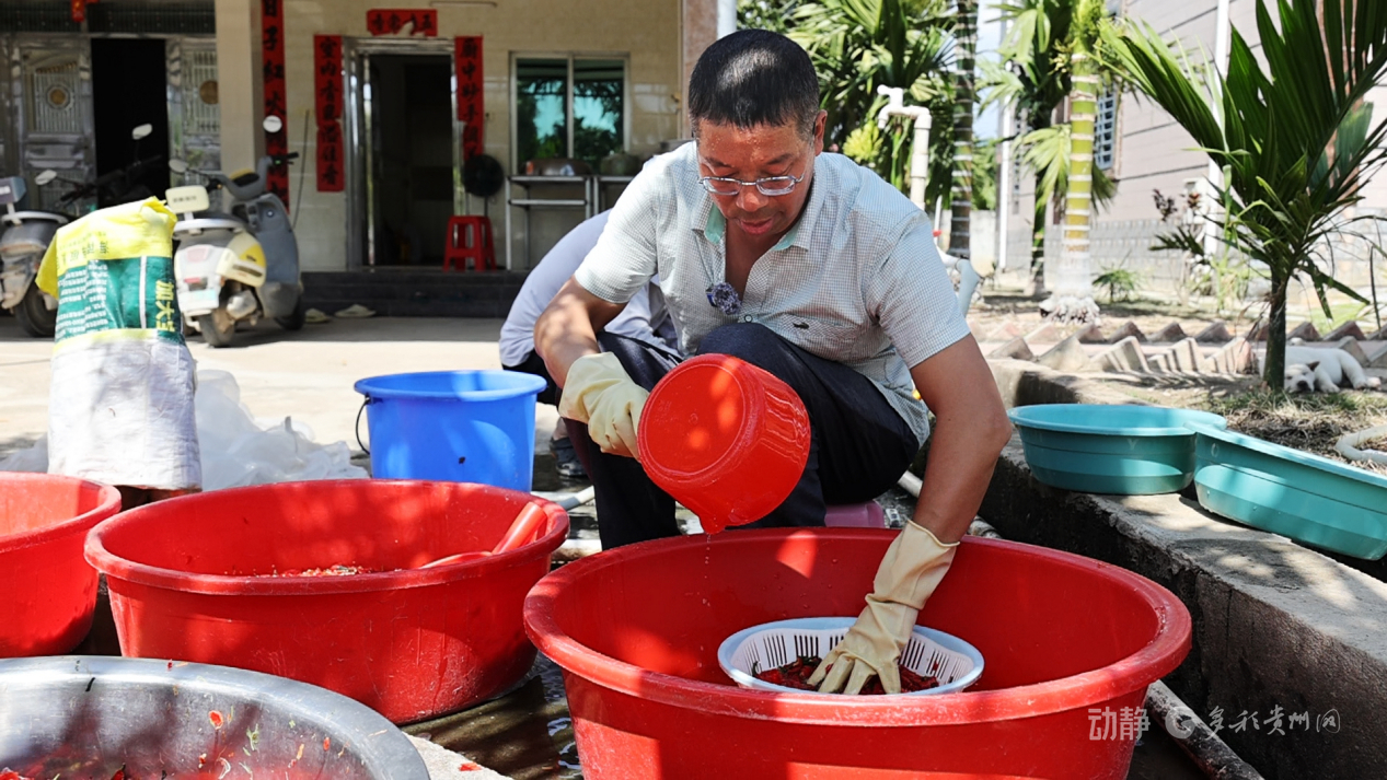貴州省農科院辣椒研究所“黔辣”育種團隊成員劉崇政正在分離采收的辣椒種