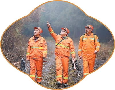 王勇(中)和護(hù)林員們一起巡山。