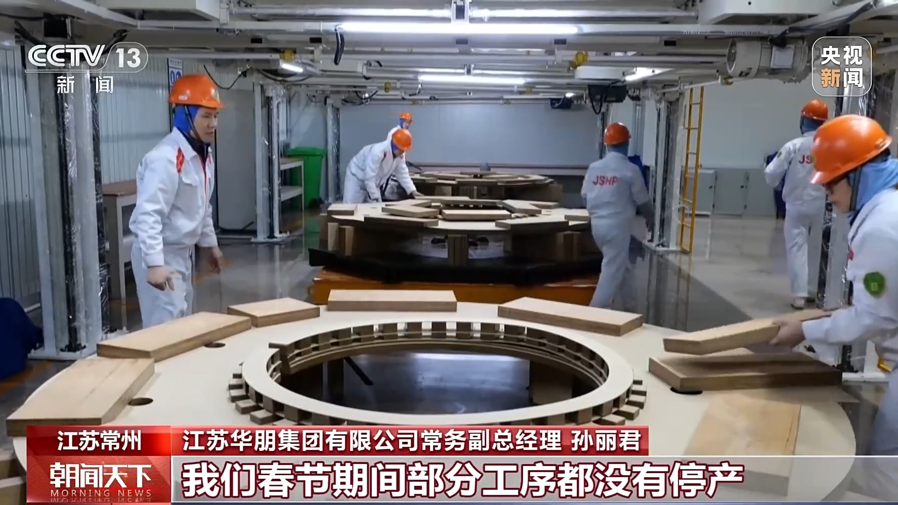 江蘇華朋集團有限公司常務副總經理 孫麗君:眼下,我們在手訂單已超過30億元,其中出口訂單超過20億元,現在訂單已經排到年底。為了搶抓工期,確保訂單按時交付,我們春節期間部分工序都沒有停產。