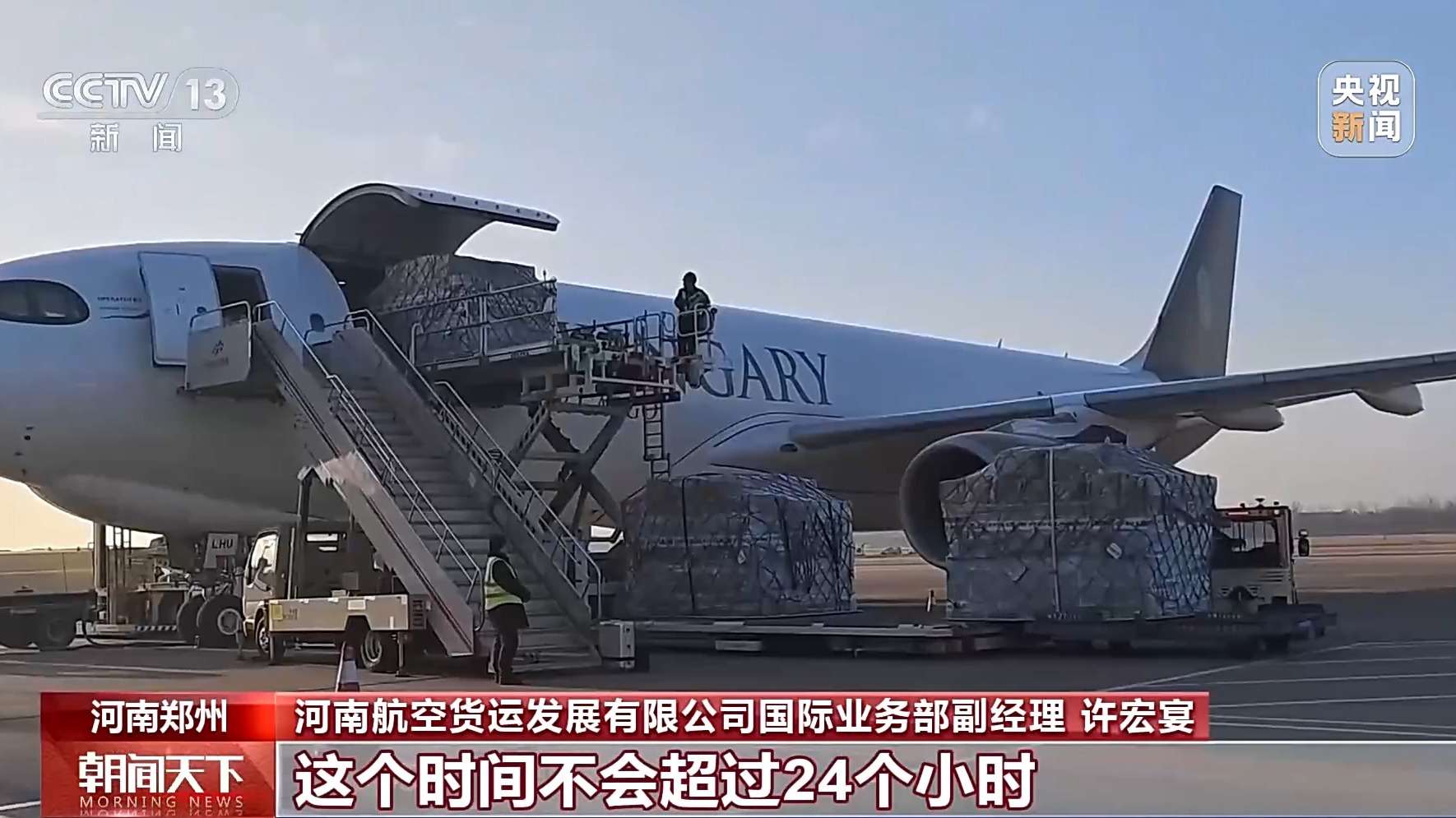 河南航空貨運發展有限公司國際業務部副經理 許宏宴:就以時效性要求比較高的跨境電商貨物、電子產品來講,貨物從到達機場貨站,直至裝上飛機起飛,這個時間不會超過24個小時。對于這類時效性要求比較高的貨物來說,貨量還是維持在一個比較平穩的狀態。