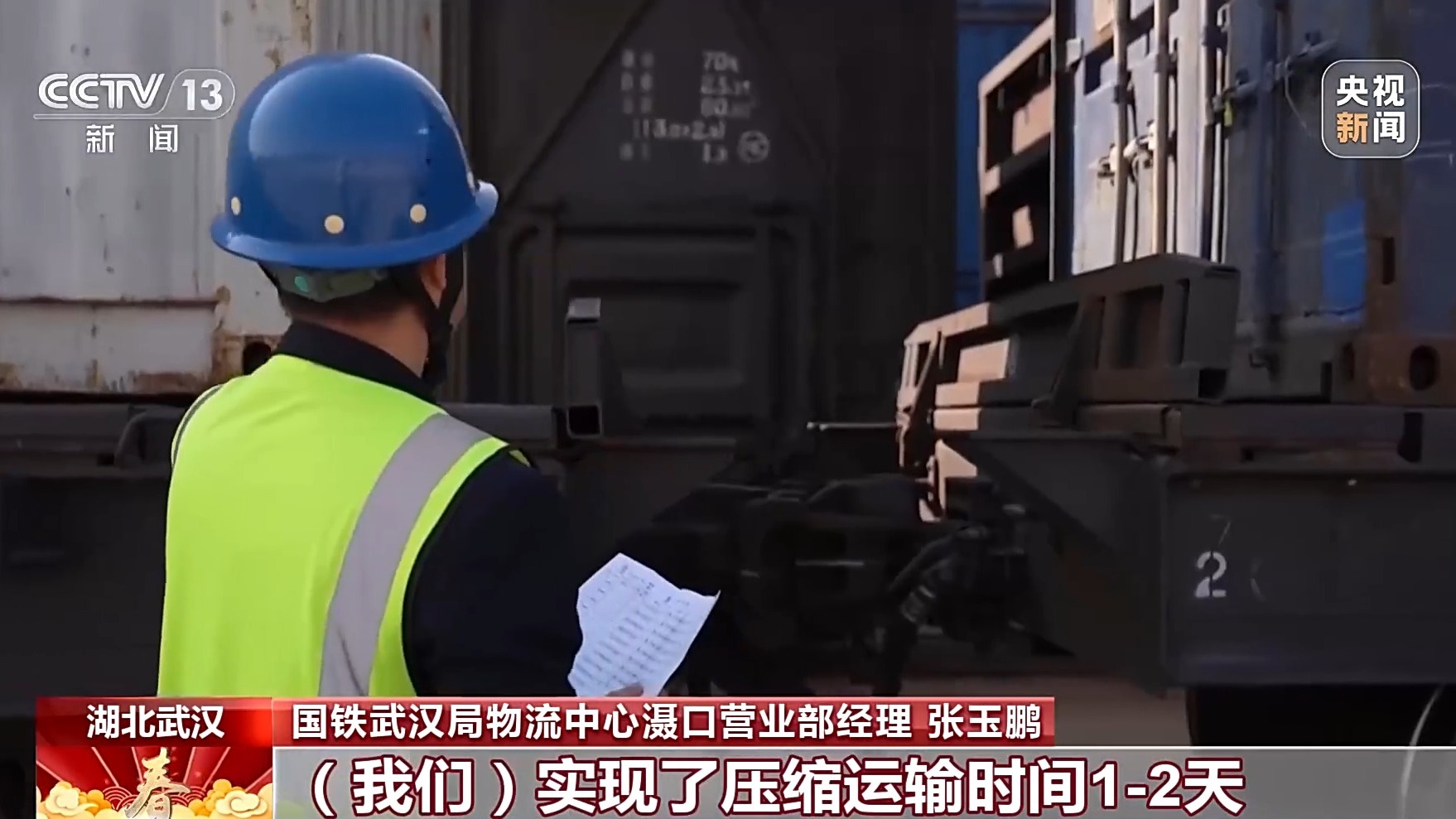 國鐵武漢局物流中心灄口營業部經理 張玉鵬:現在貨量明顯上來了,很多企業開年第一批貨都集中在這幾天發運,每天發到3列左右。通過前置查驗、集拼集運、雙始發站聯動,我們實現了壓縮運輸時間1-2天、降低物流成本15%。