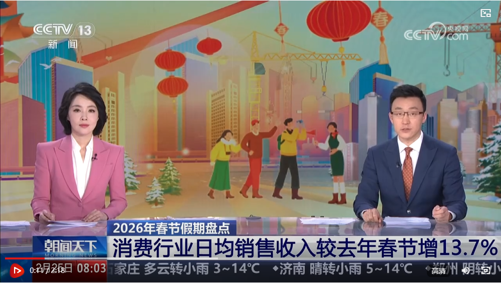 央視網消息:國家稅務總局增值稅發票數據顯示,這個春節假期,全國消費相關行業日均銷售收入與上年春節假期相比增長13.7%。消費市場十分火熱,呈現多方面的亮點。
