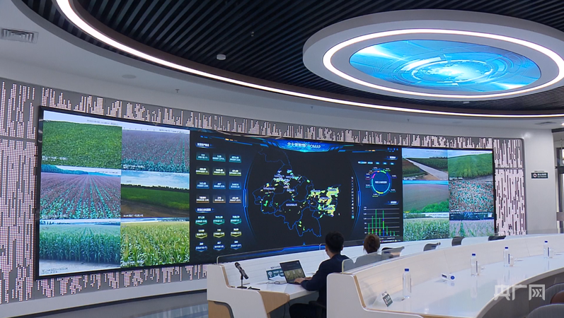 在北大荒信息公司的智慧農業大數據中心,數據庫集合了北大荒4800多萬畝耕地80年來的種植數據,工作人員通過操作智慧大屏展示了黑土地智慧農業“未來”的模樣。