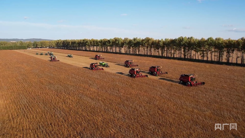 在鶴崗市蘿北縣,大馬力機車正在收獲大豆(央廣網發 李晟 攝)