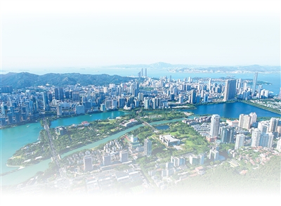 福建廈門市筼筜湖經過多年綜合治理,完成美麗蝶變。圖為筼筜湖俯瞰。