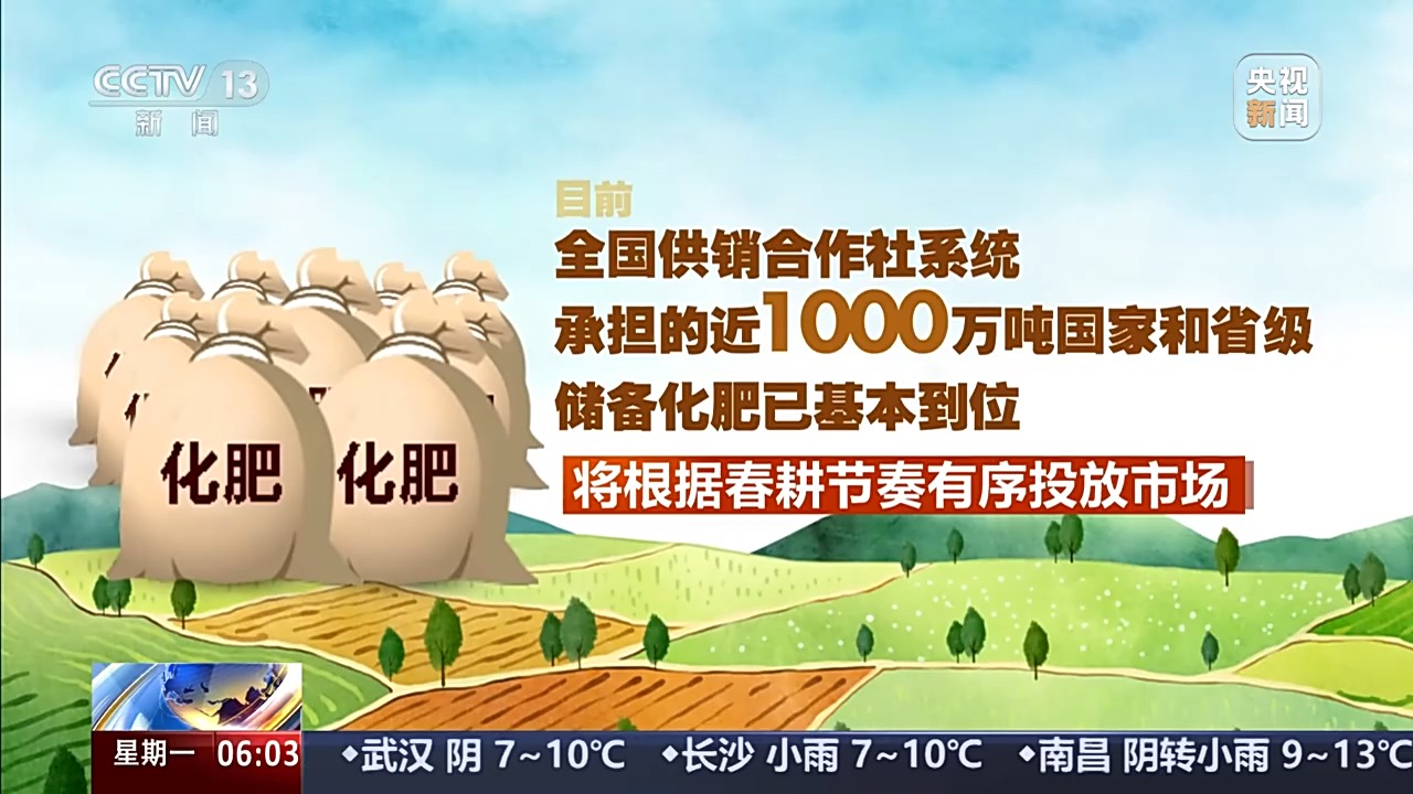 目前,全國供銷合作社系統承擔的近1000萬噸國家和省級儲備化肥已基本到位,將根據春耕節奏有序投放市場。