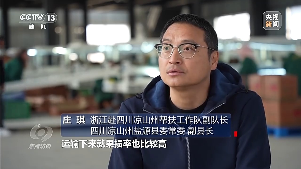 浙江赴四川涼山州幫扶工作隊副隊長、四川涼山州鹽源縣委常委、副縣長 莊琪:原先道路不好,運輸下來果損率比較高。我們投了資金,幫他們建設產業路,也幫他們完善了灌溉工程。半山腰我們都建了提水工程,在比較高的山上果農也能給果子澆水,提高他們的產量。