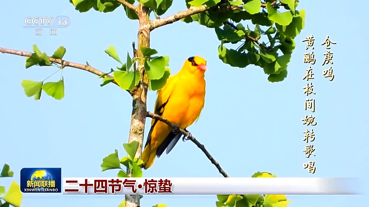 “倉庚鳴”,倉庚也就是黃鸝,鳥兒們感知到春意的律動,在枝間婉轉歌唱。