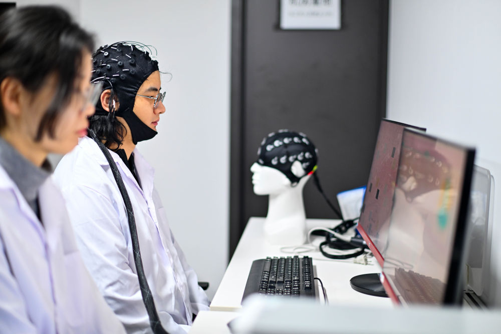 2026年2月27日,在位于天津濱海高新區的中電云腦(天津)科技有限公司,工作人員進行腦機接口技術測試。新華社記者 趙子碩 攝