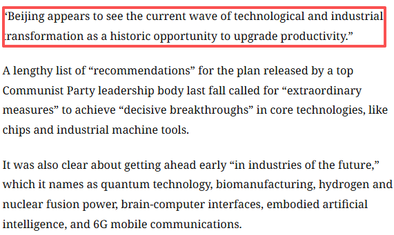 路透社報道稱,中國“十五五”規(guī)劃綱要草案立意高遠,將積極發(fā)展人工智能,力爭在量子計算、人形機器人等新興技術(shù)領(lǐng)域占據(jù)領(lǐng)先地位。政府工作報告中,人工智能被提及超過 50 次,全面實施 “人工智能?。薄⌒袆佑媱?,強調(diào)搶占科技發(fā)展制高點、實現(xiàn)關(guān)鍵核心技術(shù)決戰(zhàn)突破。報告開篇突出新質(zhì)生產(chǎn)力,相關(guān)部署重視程度較往年顯著提升。報道認為,中國在人工智能、生物醫(yī)藥、機器人、量子技術(shù)等領(lǐng)域已躋身世界前列。