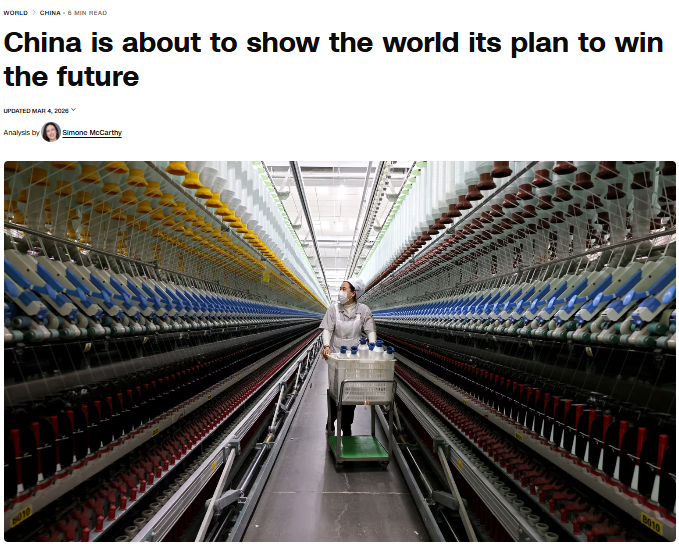 十四屆全國人大四次會議3月5日在北京開幕。多家外媒聚焦 “十五五” 規(guī)劃綱要草案與政府工作報告中的科技創(chuàng)新部署,認為中國以發(fā)展新質(zhì)生產(chǎn)力為引領(lǐng),把人工智能、量子計算、人形機器人等前沿技術(shù)擺在國家發(fā)展全局的核心位置,相關(guān)戰(zhàn)略布局目標(biāo)明確、舉措扎實,展現(xiàn)出加快實現(xiàn)高水平科技自立自強的堅定決心。