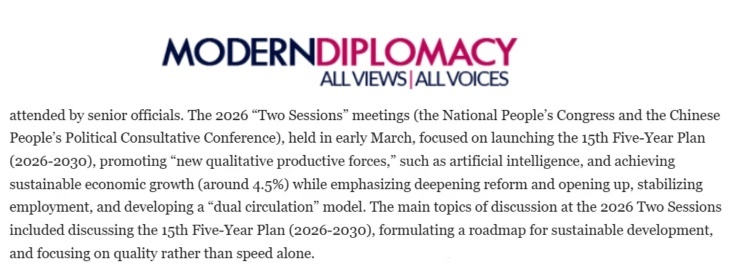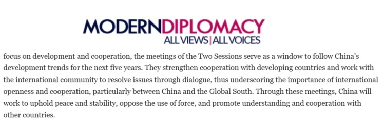 歐洲《現代外交》網站近日刊登埃及本尼蘇伊夫大學副教授納迪亞·赫爾米博士的評論文章稱,今年中國兩會重點關注發展模式創新與深化伙伴關系。會議議題包括通過共建“一帶一路”倡議推動“高質量發展”,深化數字經濟、基礎設施及能源領域的國際合作,為推動構建人類命運共同體提供重要平臺。