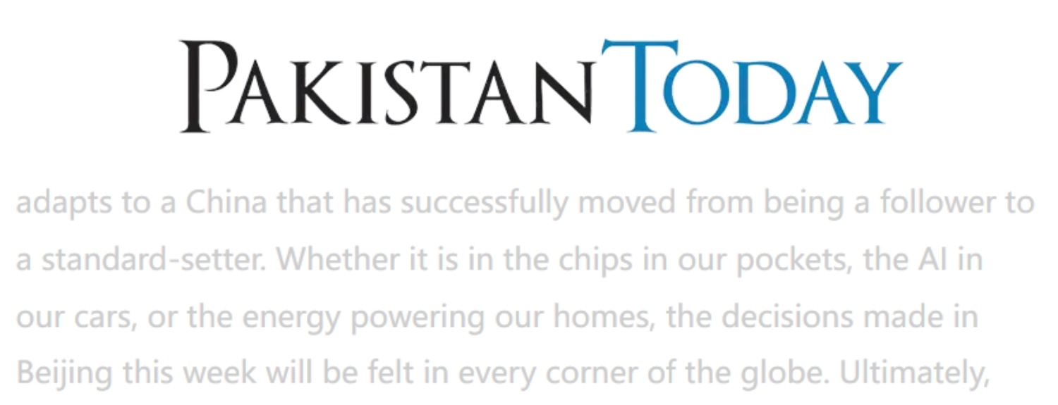 《今日巴基斯坦》網站近日刊文聚焦今年中國全國兩會期間的政府工作報告和“十五五”規劃綱要草案,認為從中可以看出,中國正在進行一次深刻轉型,“這將重塑全球經濟格局”。