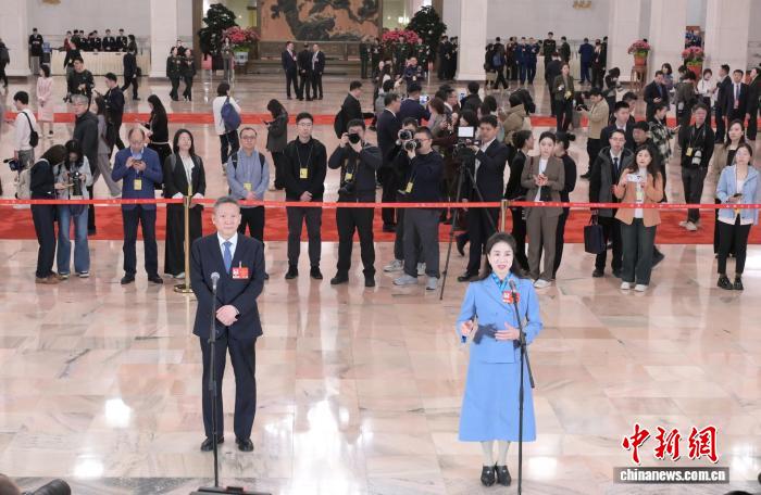 3月9日,十四屆全國人大四次會議第二場“代表通道”集中采訪活動在北京人民大會堂舉行。圖為活動現場。中新社記者 翟羽佳 攝