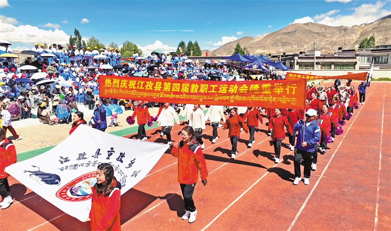 近日,江孜縣教育系統舉辦以“奮斗教育路 建功英雄城”為主題的第四屆教職工運動會。本屆教職工運動會比賽項目眾多,競賽類項目有男女100米跑步賽、男女4×100米接力賽;田賽類項目有男女鉛球、男女跳遠、男女一分鐘跳繩和女子一分鐘踢毽子比賽;傳統賽類項目有吉韌(藏式克郎球)、藏棋(國王與大臣)、男女拔河比賽、秀茲(藏骰一男一女混合);趣味賽類項目有陸地龍舟(男女混合)、旋風跑(男女混合)、隔空取物(男女混合)、“乒”盡全力(男女混合);球賽類項目有男子足球和籃球、女子籃球比賽等項目。