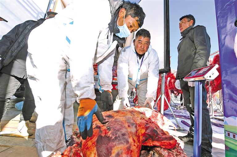近日,拉薩市農業農村局舉辦2023年拉薩市牦牛肉集中上市銷售活動。據了解,為展示拉薩市牦牛集中養殖成效,滿足市民群眾對牦牛肉的需求,調節畜產品價格,切實讓利于人民群眾,此次銷售活動共設置18個銷售攤位,包括當雄縣牦牛肉銷售區、林周縣牦牛肉銷售區、達孜區牦牛肉銷售區、尼木縣牦牛肉銷售區、拉薩市凈土公司牦牛肉銷售區、曲水縣牦牛肉銷售區(西藏農投公司)、墨竹工卡縣藏豬銷售區及11個農畜產品銷售區。其中,11家農畜產品加工企業或合作社銷售牦牛肉干、辣椒醬等農畜特色產品。活動期間,拉薩市動物衛生及植物檢疫監督所還派出了檢疫人員進行現場查證驗物,確保廣大市民買得放心、吃得安心。