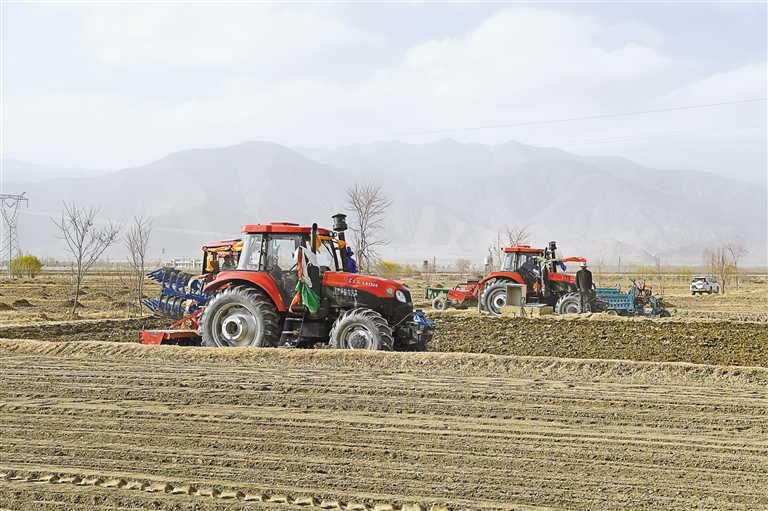 圖為扎囊縣扎其鄉(xiāng)孟卡榮村村民利用大型農(nóng)機進行春耕。記者 李洲 攝
