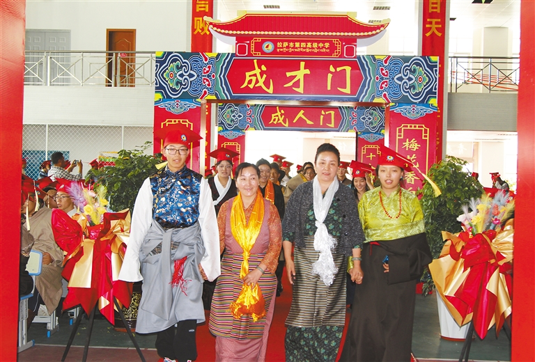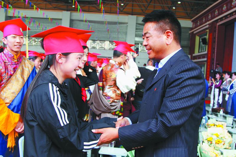 圖為在撥穗儀式上,老師及家長代表為畢業(yè)生們一一撥穗。記者 央金 攝