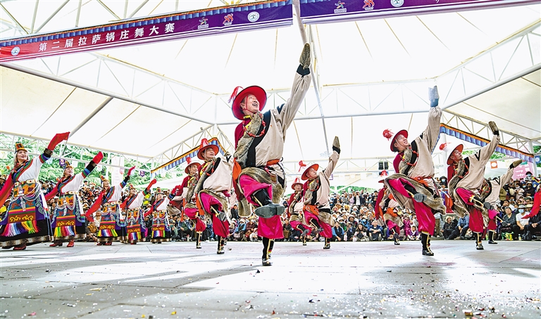 圖為參賽者在第二屆拉薩鍋莊舞大賽現場表演。新華社記者 丁增尼達 攝