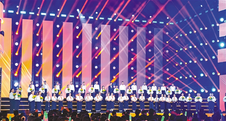 圖為合唱代表隊(duì)在臺(tái)上表演。 記者 劉斯宇 攝