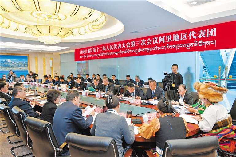 圖為1月19日,阿里地區代表團審議政府工作報告。記者 次仁平措 攝