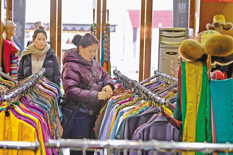 市民在藏裝店選購新衣。記者 唐斌 攝