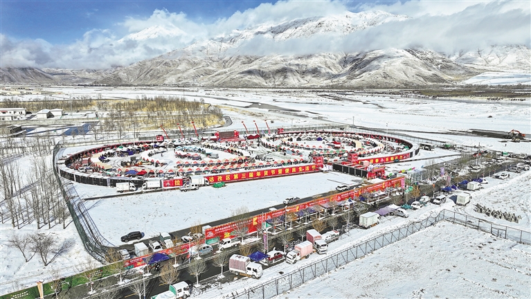 拉薩市達孜區第三屆年貨節現場(無人機拍攝)。記者 鹿麗娟 攝
