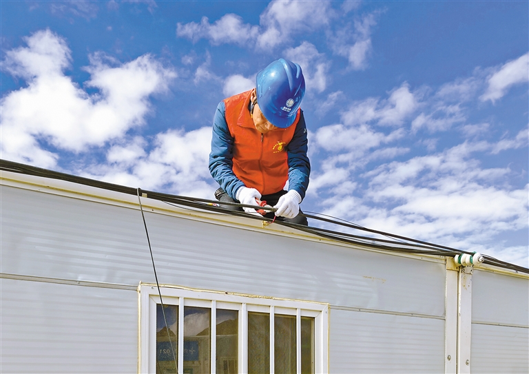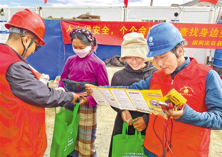 圖為“安全生產(chǎn)月”宣傳咨詢?nèi)?,國網(wǎng)定日縣供電公司員工深入災(zāi)區(qū)安置點開展線路隱患排查工作。通訊員 索朗次仁 記者 袁海霞 攝