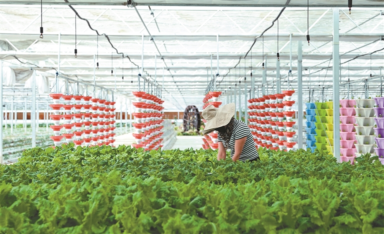 圖為墨竹工卡縣現(xiàn)代農(nóng)業(yè)產(chǎn)業(yè)園工作人員在溫室大棚內(nèi)忙碌。通訊員 洛克 記者 唐斌 攝
